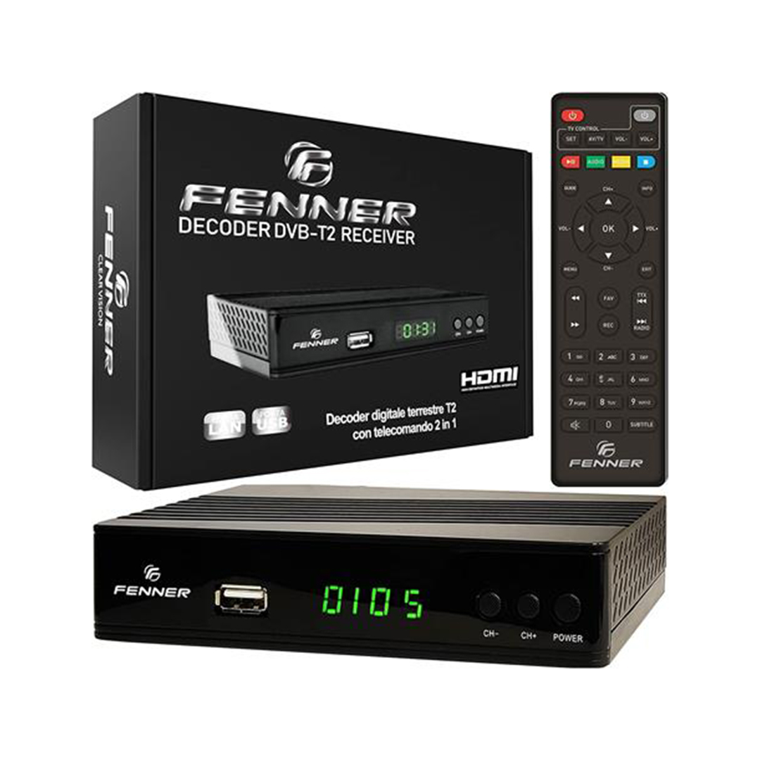 Decoder Digitale Terrestre Hd Dvb-T2/Hevc Fenner Fn-Gx2 Usb 2.0 Telec.2in1
